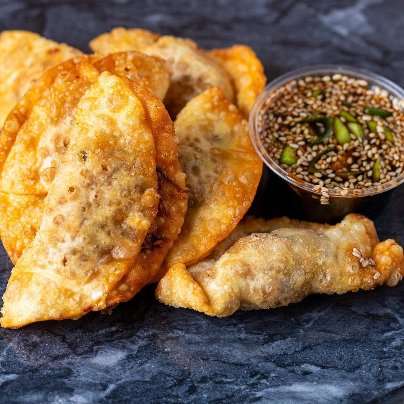 5 delicious Brisket Dumplings with a sweet soy sauce